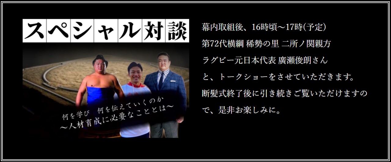 第72代横綱 稀勢の里 二所ノ関親方と、トークショーをさせていただきます!