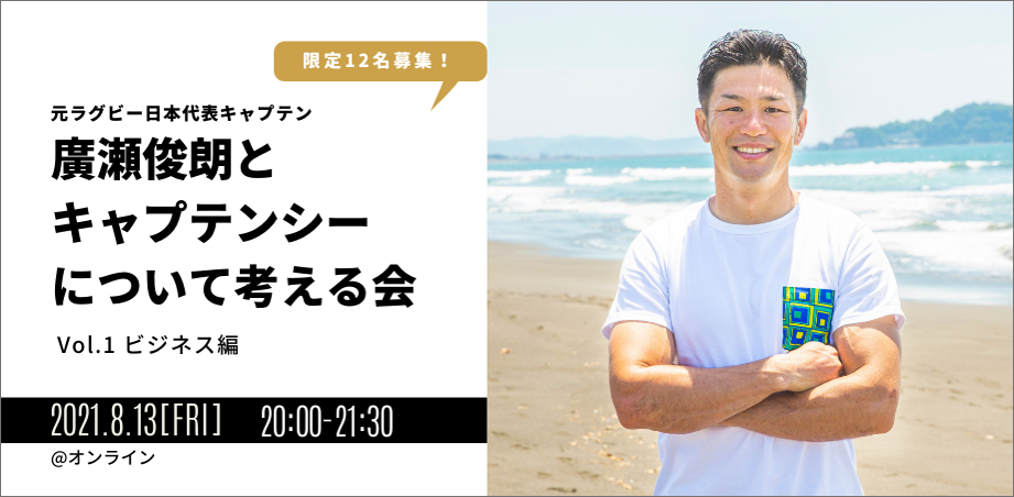 2) 8/13(金) 20:00~21:30 オンラインイベント開催!受付スタート!!『元ラグビー日本代表キャプテン 廣瀬俊朗とキャプテンシーについて考える会 Vol.1 ビジネス編』