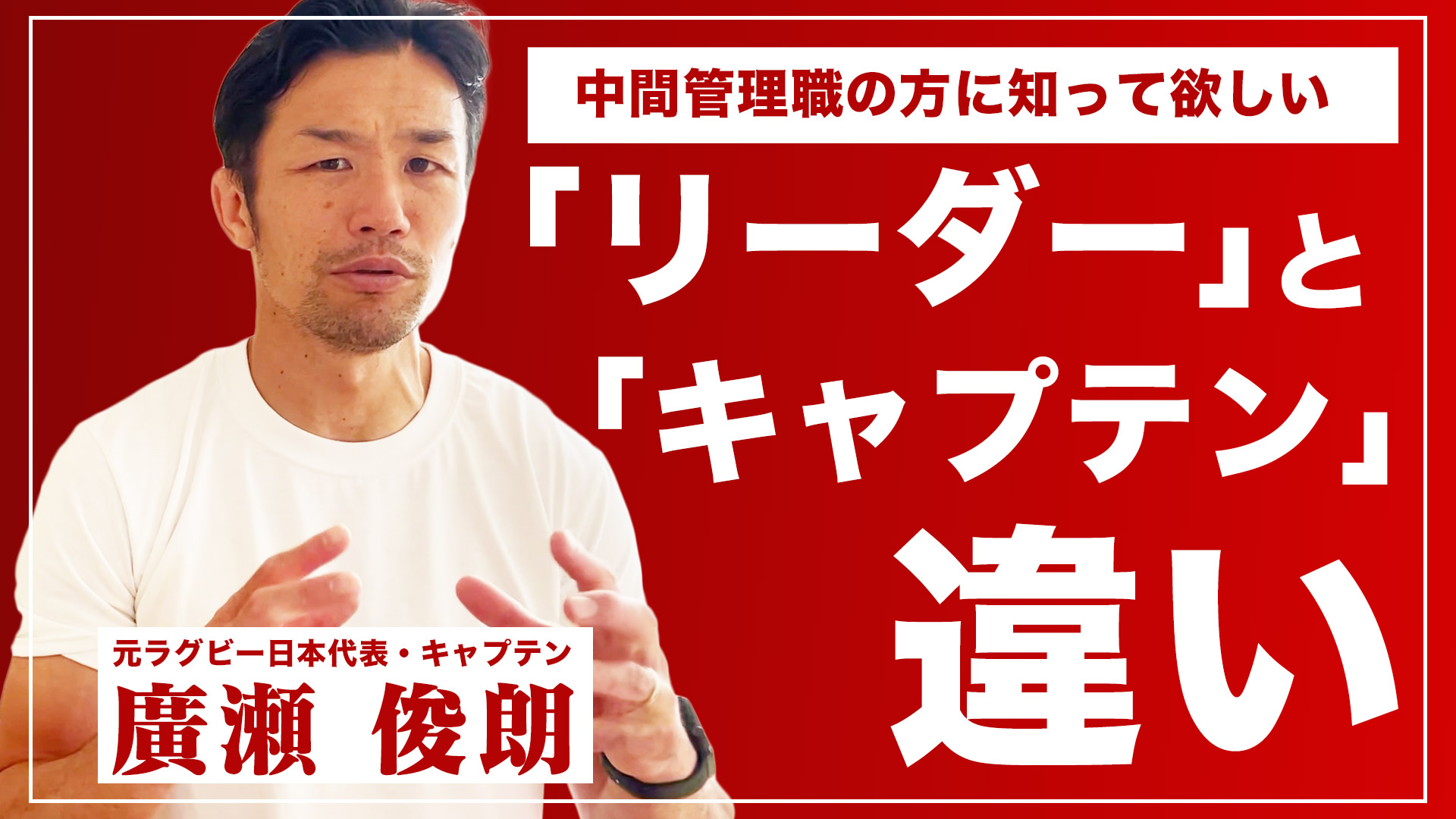 今回は5歳から始めたラグビーにおいて、中学生以降ずっとキャプテンというポジションを歴任し、約半数が海外出身選手という、まさにダイバーシティーに富んだラグビー日本代表チームをまとめあげた経験を持つ株式会社HiRAKU代表 廣瀬俊朗がビジネスの場面でも活かせるキャプテンシーの秘訣をレクチャーします。