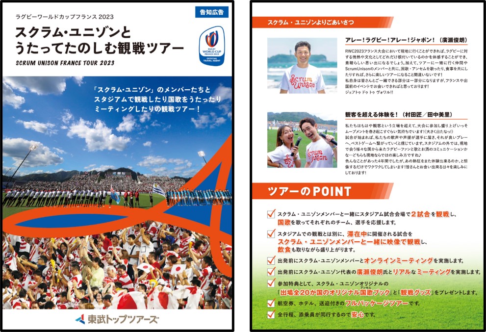 ラグビーワールドカップフランス2023「スクラム・ユニゾンとうたってたのしむ観戦ツアーチケット」の追加販売が決定いたしました!