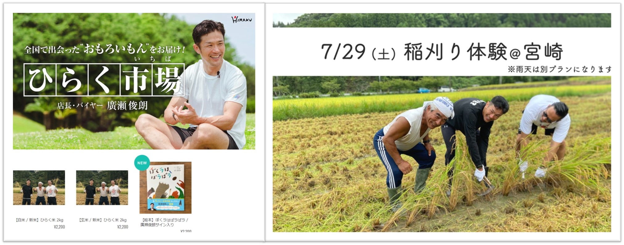 廣瀬が店長・バイヤーを務め、日本全国を回って出会った“おもろいもん“や、HiRAKUのオリジナル商品を販売している“ひらく市場(いちば)“。廣瀬監修の絵本「ぼくラはばラばラ」もサイン入りでご用意しておりますので、ぜひチェックをお願いいたします!