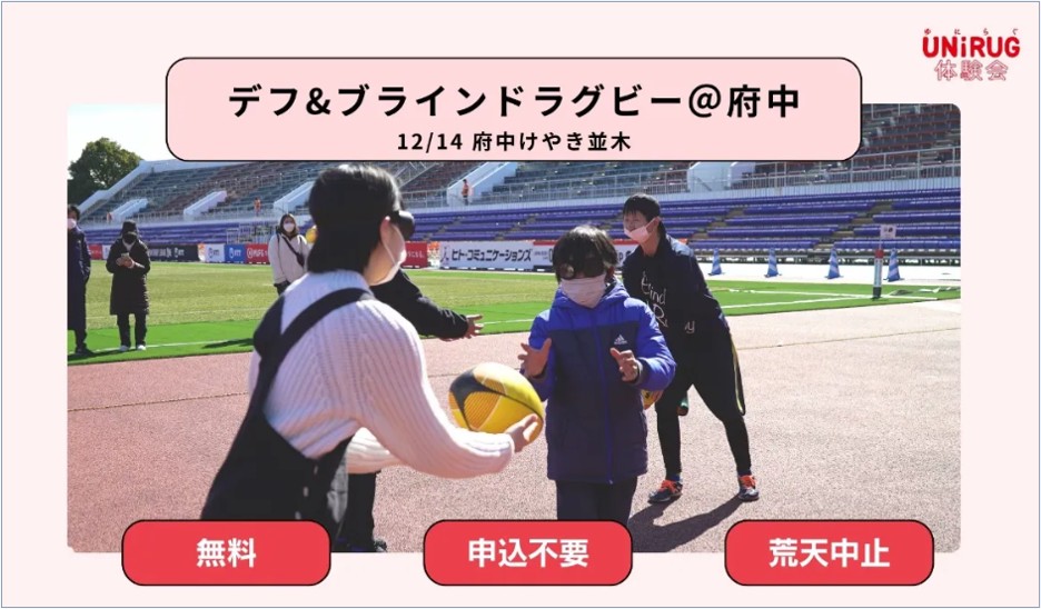 今年は、UNiRUG体験会として「デフラグビー」と「ブラインドラグビー」を実施いたします。どなたでもご参加いただけますので、ぜひお立ち寄りください!