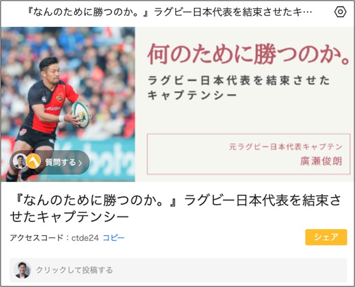 この度、オンラインのラーニングサークル(学びのSNS)「『なんのために勝つのか。』ラグビー日本代表を結束させたキャプテンシー」(通称:なん勝つサークル )を開設、メンバー募集をスタートいたしました。